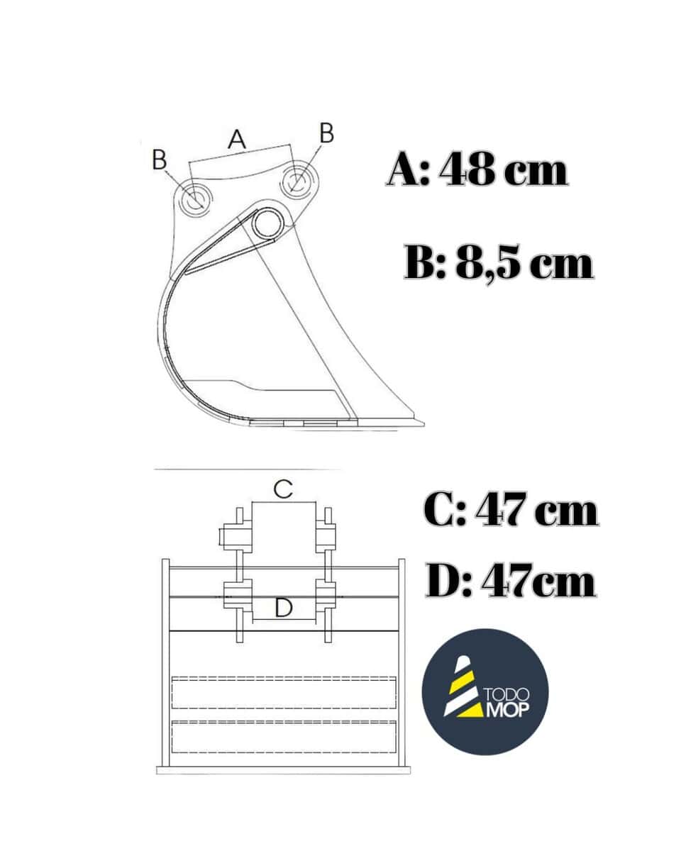 - Centro bulón a centro bulón: 48 cm