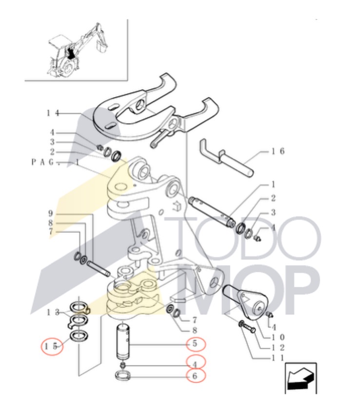 Bulón para FIAT HITACHI model FB-110. FIGURA 5 DESPIECE.