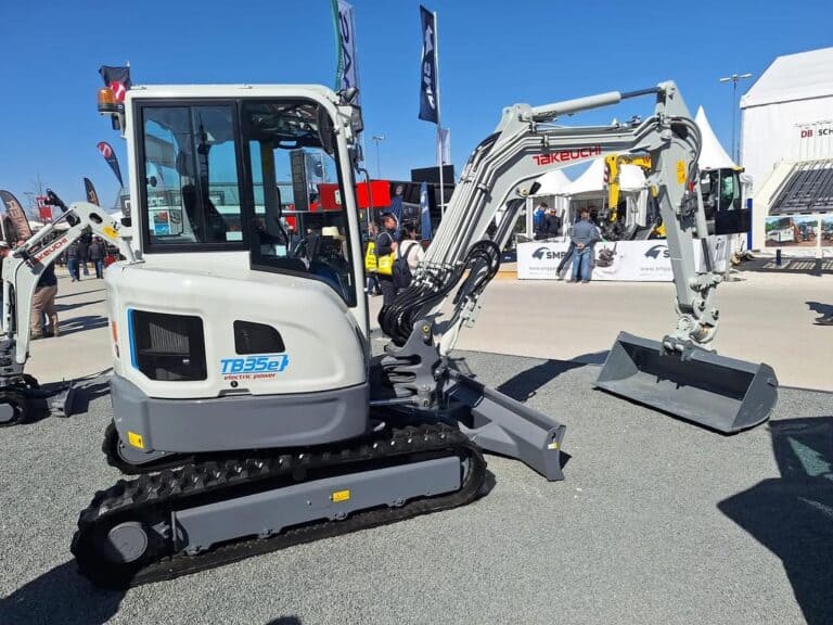 Por otro lado, la TB35e es la excavadora eléctrica más grande que TAKEUCHI tiene hasta ahora. Con más potencia y alcance, esta máquina está pensada para trabajos más exigentes, manteniendo la ventaja de cero emisiones y menos ruido.
